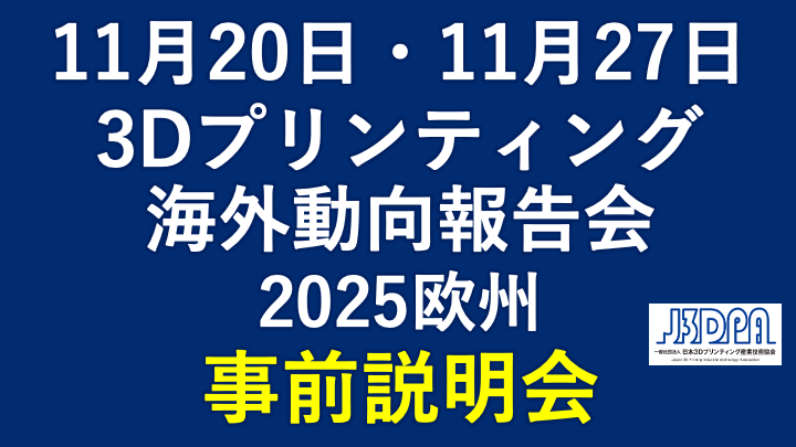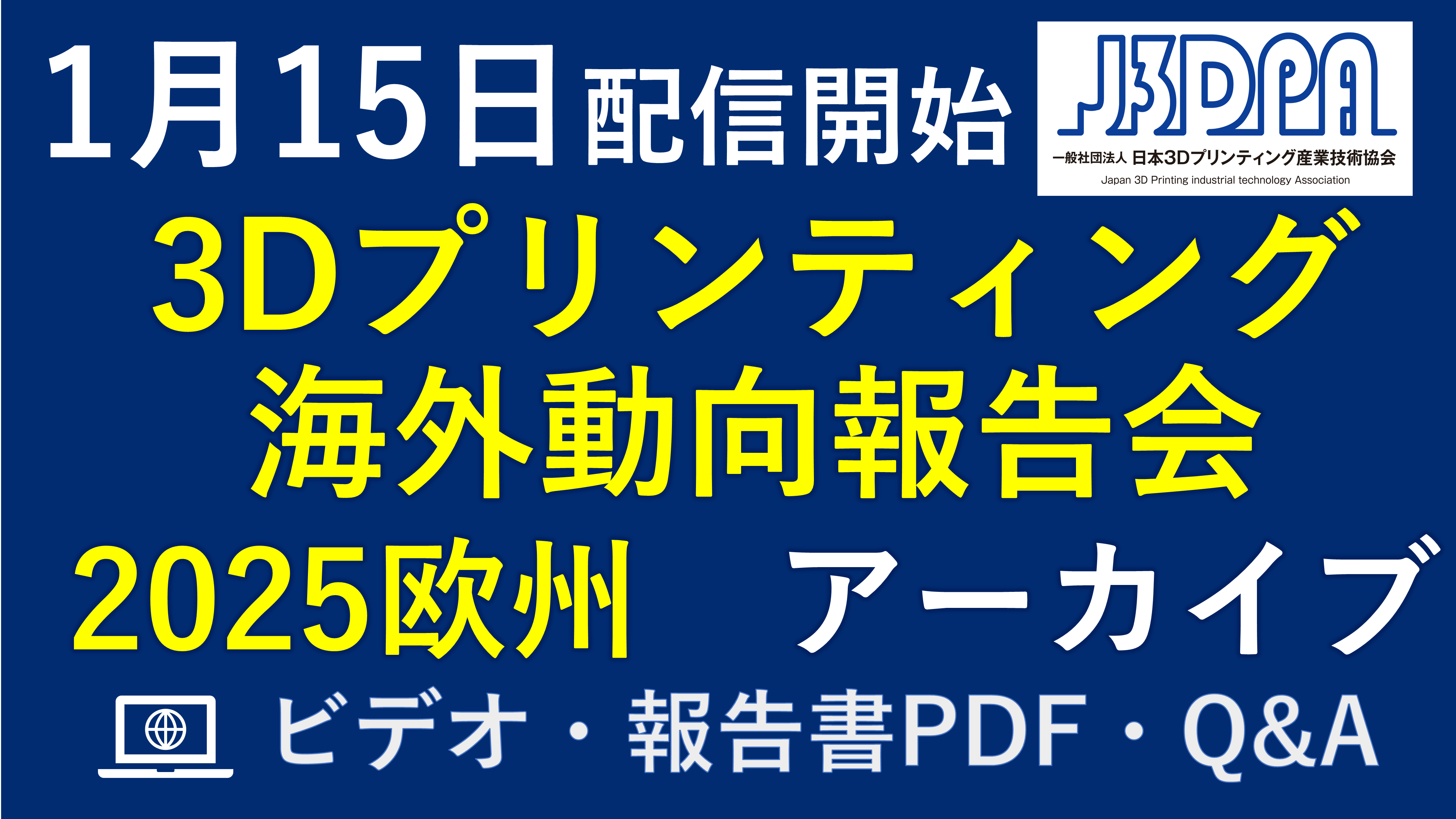 最新情報 ロードマップ 10月3日 AM技術ロードマップ セミナー 10月20日 - 10月27日 事前説明会:3Dプリンティング海外動向報告会2025欧州 セミナー 10月22日 アディティブ・マニュファクチャリングによる素材加工革新 〜 セラミックス、CFRPの可能性と最新動向 セミナー 10月30日 アディティブ・マニュファクチャリング設計革新〜進化するDfAM セミナー 11月6日 アディティブ・マニュファクチャリング設計革新〜進化するDfAM 調査報告 12月22日 3Dプリンティング海外動向報告会2025(欧州) 調査報告 2026年1月15日 3Dプリンティング海外動向報告会2025(欧州) 調査報告 2026年1月15日 配信開始 3Dプリンティング海外動向報告会2025(欧州) シンポジウム 2026年1月21日 第16回AMシンポジウム (準備中) :会場開催のイベント等、:ウェビナー・WEBコンテンツ等